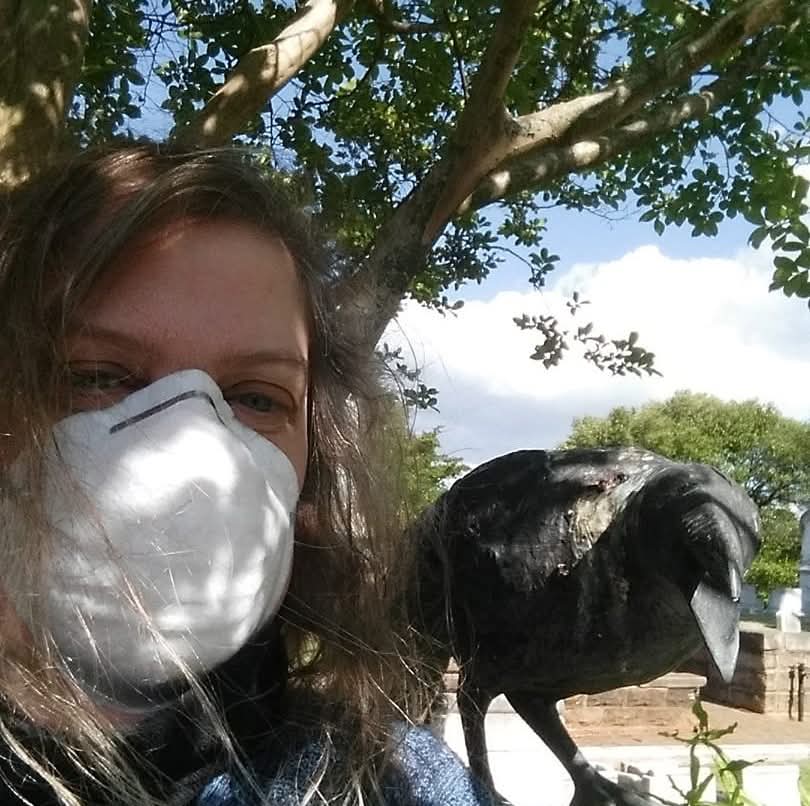 Karen posing next to a raven at Oakland Cemetery. In her free time, she performs poetry across Atlanta.