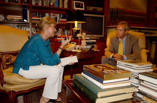 Mary interviewing Ambassador David Welch in 2004.